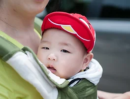 엄마가 카메라로 찍으니 엄마쪽을 바라보는 창현이.