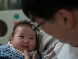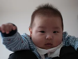 엄마가 향을 맡아 보라며 가까이 대 주었더니 칭얼댄다.